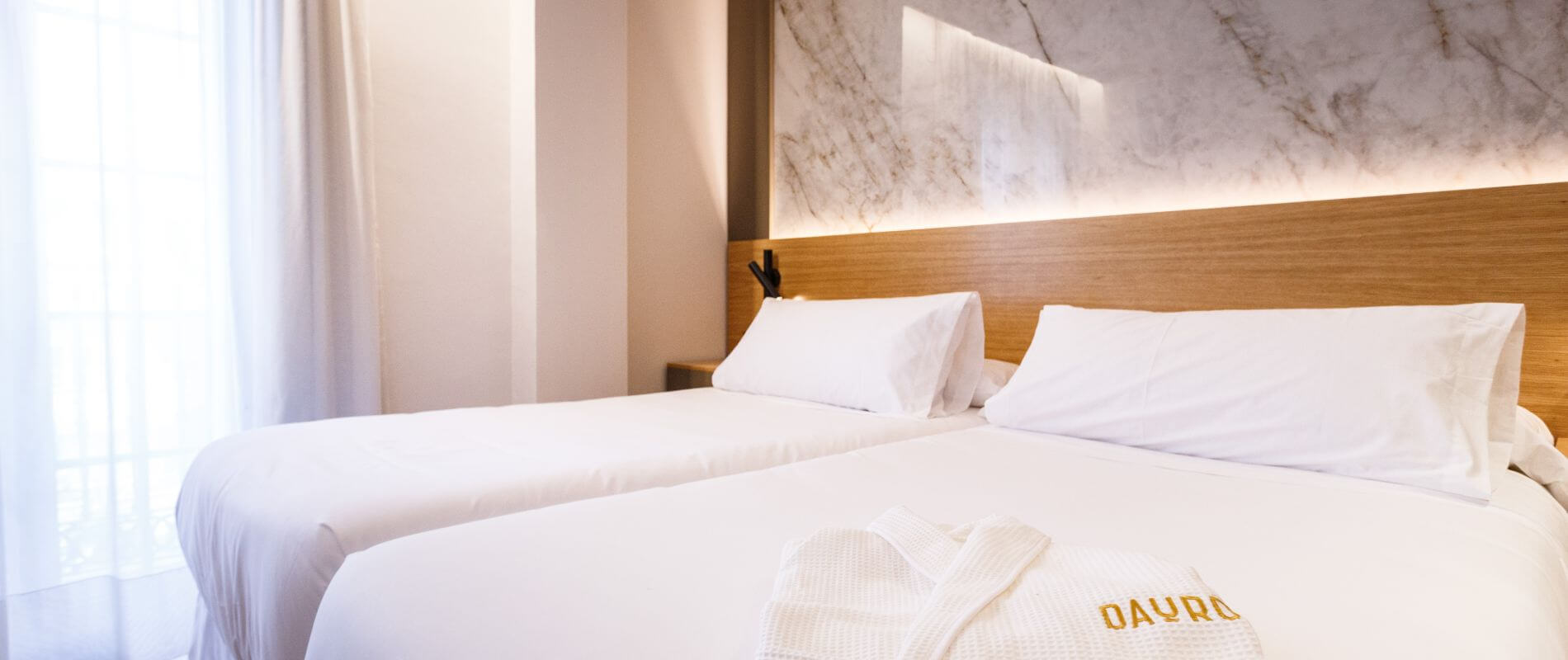 Outer room, bed with mattress and pillow 1.05 viscoelastic, soundproof, with air conditioning, parquet floors and elegant décor. Non fumadores.Wi-fi. Alarm clock. More information